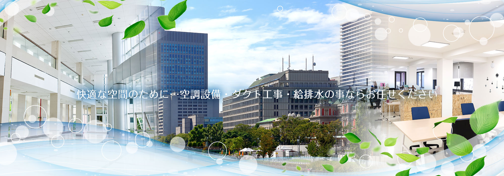 空調設備・給排水工事・消防設備など、空気と水を大切に考えながら、皆様のご要望にお応えしています。どのようなことでも是非一度YG設備工業株式会社へご相談ください。